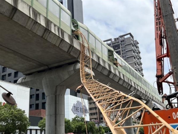2023年5月10日,台中市一处工地正在进行塔吊拆卸作业,突然一根巨大的吊臂从高空坠落,直接砸中了正在行驶的捷运列车。